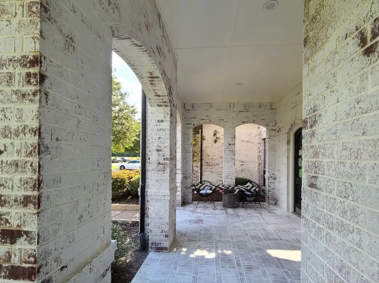 Beautiful Brick and Stone DFW home get’s a white and black makeover with a soft lime slurry over the stone to add subtle textures.